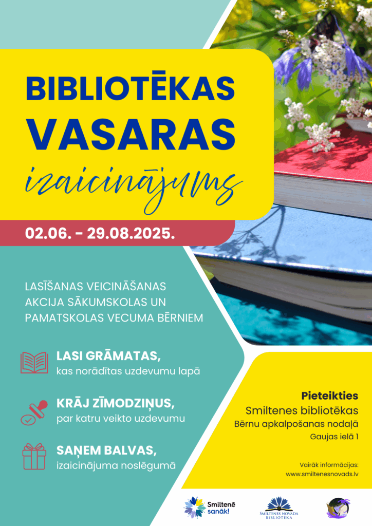 Smiltenes bibliotēkas Bērnu apkalpošanas nodaļa no 2.jūnija līdz 27.augustam aicina bērnus iesaistīties “Bibliotēkas vasaras izaicinājumā”. Izaicinājums ietver grāmatu lasīšanu un dažādu uzdevumu veikšanu, aizraujoši un saturīgi pavadot vasaras brīvlaika mēnešus.