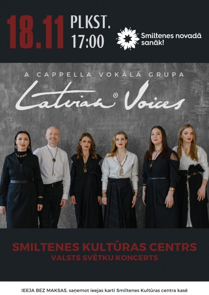18. novembrī pulksten 14.00 Smiltenes Kultūras centra Lielajā zālē Smiltenes novada pašvaldības apbalvojuma ceremonija. Plkst. 17.00 a capella grupas „Latvian Voices” valsts svētku koncerts. Ieeja – bez maksas, saņemot ieejas karti Smiltenes Kultūras centra kasē no 4. novembra.