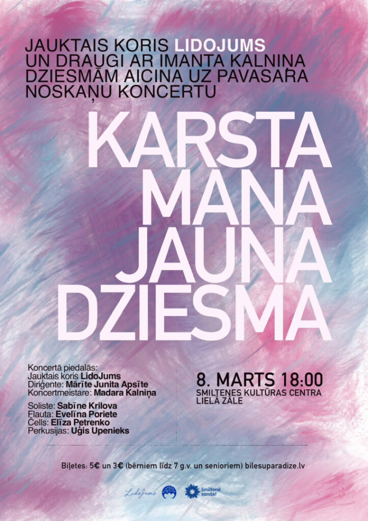 Koncerta “Karsta mana jauna dziesma” 8. martā Smiltenes Kultūras centrā.