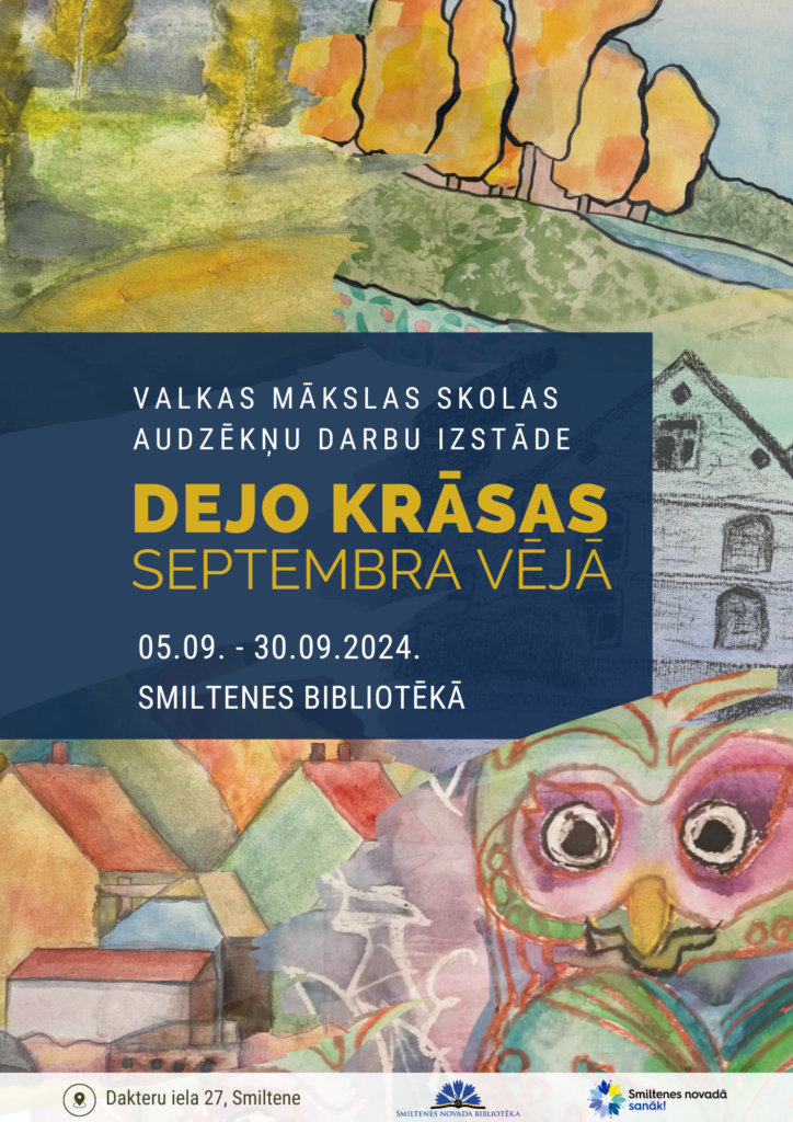 Smiltenes bibliotēkā Pieaugušo apkalpošanas nodaļas pagaidu mājvietā Dakteru ielā 27 visu septembra mēnesi skatāma Valkas Mākslas skolas audzēkņu darbu izstāde “Dejo krāsas septembra vējā”.