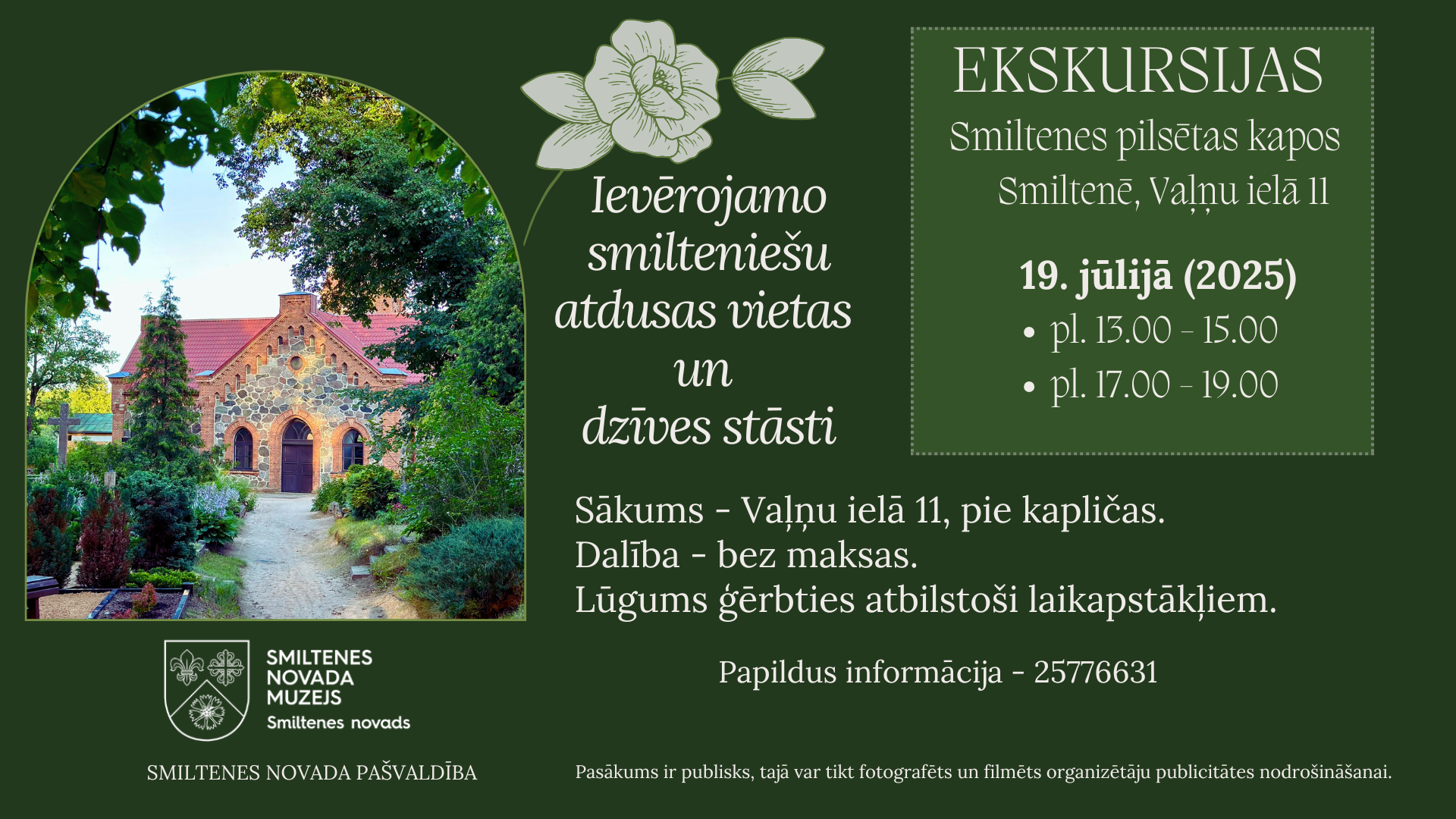 Smiltenes pilsētas 105. dzimšanas dienas svinību tematisko notikumu kopuma ietvaros muzejs atkal aicina izmantot brīnišķīgo iespēju izzināt ievērojamu smilteniešu dzīves stāstus, likteņus un atstāto mantojumu, dodoties pastaigā pa Smiltenes pilsētas kapiem un apciemojot viņu atdusas vietas.