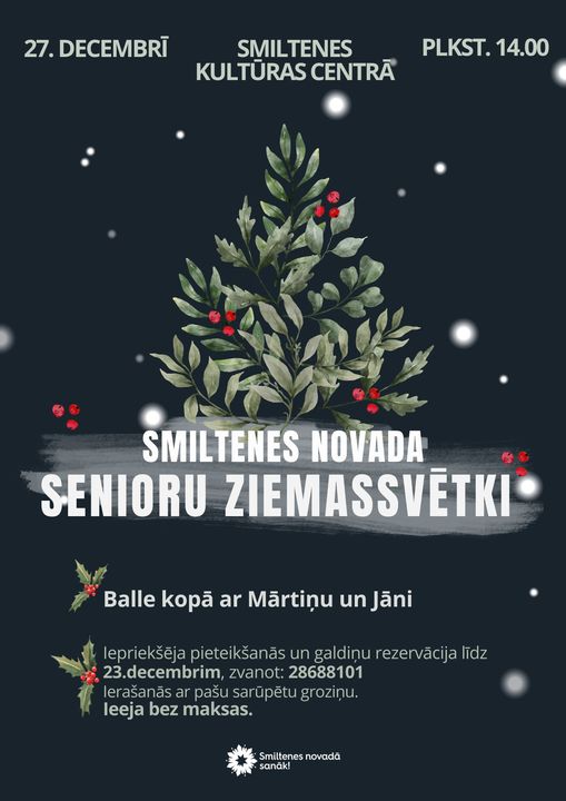 Aicinām Smiltenes novada seniorus uz Ziemassvētku balli Smiltenes Kultūras centra Lielajā zālē 27. decembrī plkst. 14.00!