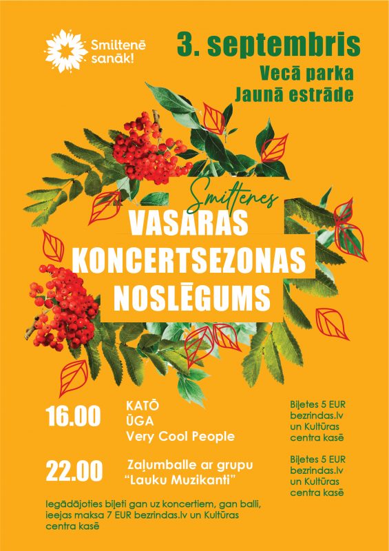 3. septembrī Vecā parka Jaunajā estrādē norisināsies Smiltenes vasaras koncertsezonas noslēgums. Plkst. 16.00 svētku koncerts un plkst. 22.00 zaļumballe.