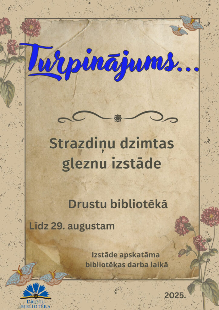 No 1. augusta līdz 29. augustam Drustu bibliotēkā apskatāma Strazdiņu dzimtas – Miķeļa, Viktora un Līgas gleznu izstāde. Tā ir ne tikai gleznu izstāde, bet arī stāsts par dzimtu!