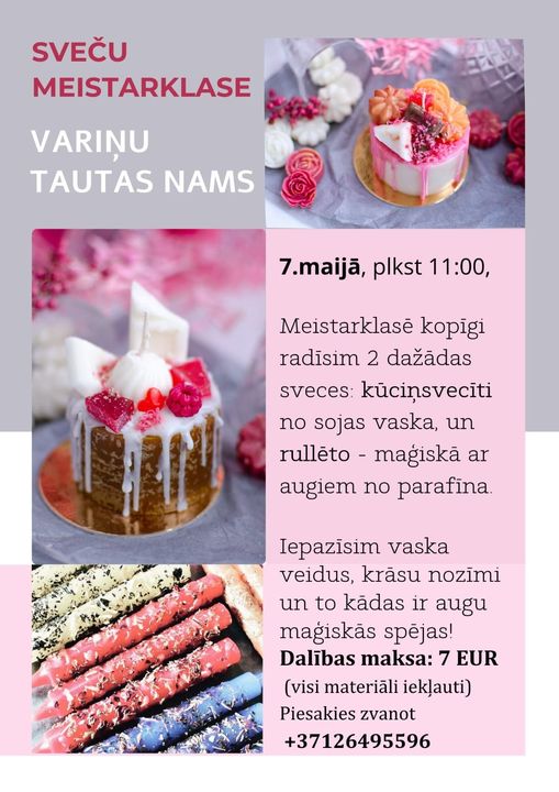 Aicinām piedalīties sveču meistarklasē 7.maijā, plkst 11:00, Variņu tautas nams