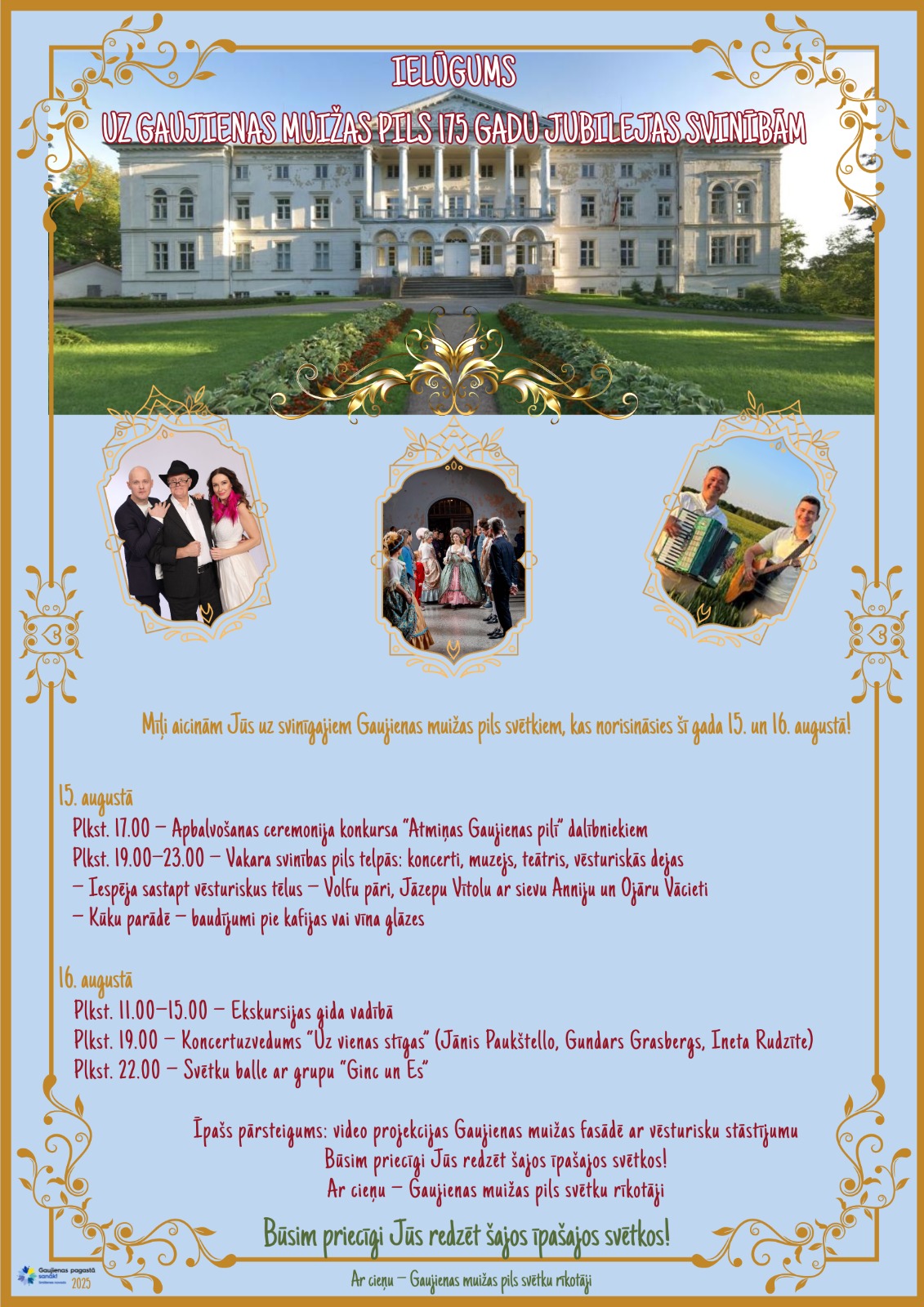Gaujienas jaunās pils 175 gadu svinības 15.un 16.augustā