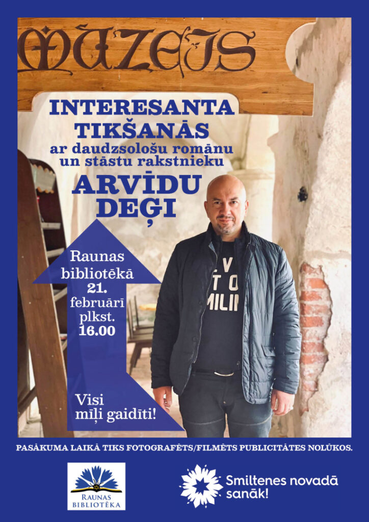 Profesionālais rakstnieks Arvīds Deģis šogad svin 20 gadus literatūrā, kopš izdota viņa pirmā grāmata. Tikšanās Raunas bibliotēkā 21. februārī plkst. 16.00 būs interesanta ar to, ka Deģis sola atklāt sava radošā darba virtuvi – kā top populāri vēsturiskie romāni un kāpēc pēdējā laikā vairāk pievērsies mūsdienīgu stāstu krājumu radīšanai.