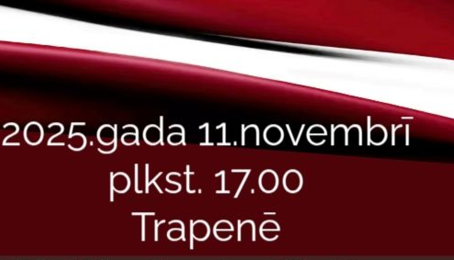 Aicinām pievienoties Lāčplēša dienai veltītā lāpu gājienā un piemiņas brīdī. Lāpu gājienā dosimies no bijušās pagastmājas līdz Trapenes Kultūras namam. Piemiņas brīdis pie Kultūras nama. Muzikālais noformējums – Rihards Baranovs