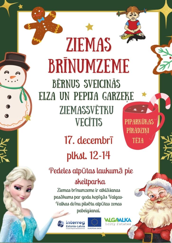 Sestdien, 17. decembrī, Ziemassvētku tirdziņa ietvaros, no plkst. 12.00 līdz 14.00 gan lieli, gan mazi aicināti uz lustīgo Ziemas Brīnumzemi ar Elzu un Pepiju Garzeķi.