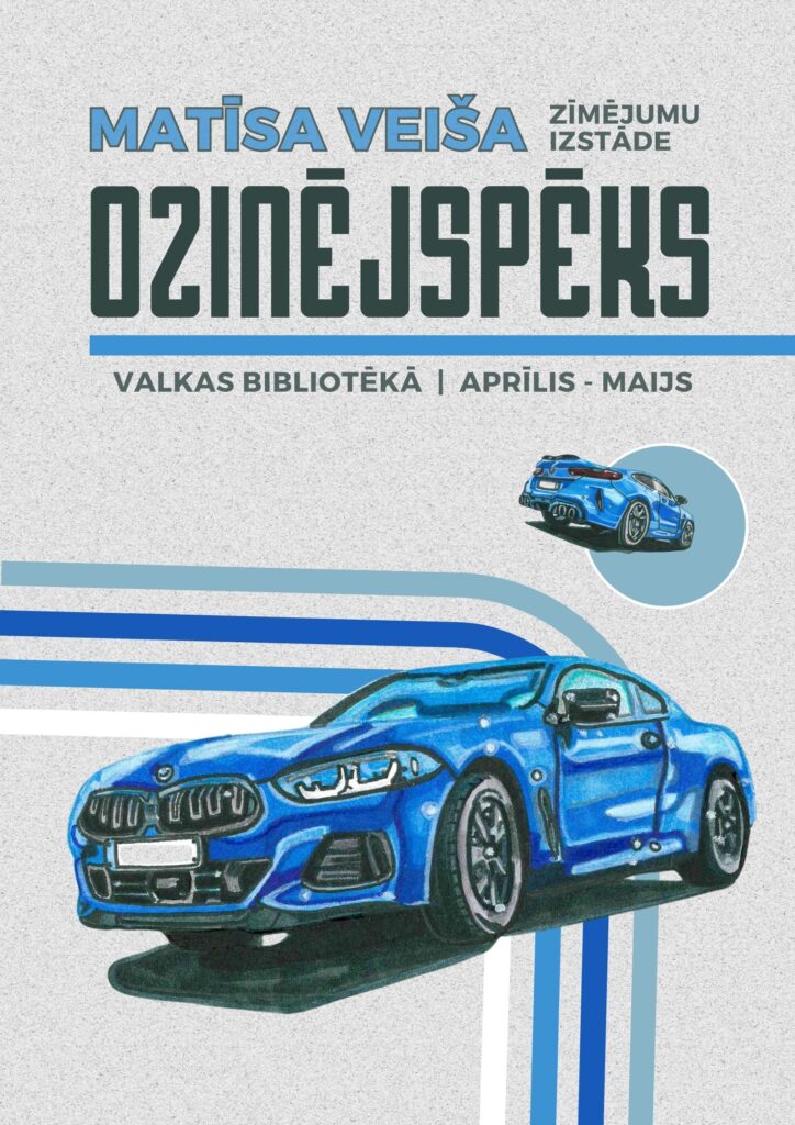 Valkas bibliotēkā līdz 31.maijam apskatāma Valkas mākslas skolas absolventa Matīsa Veiša zīmējumu izstāde “Dzinējspēks”. Ekspozīcijā iekļauti ar zīmuli un krāsainiem marķieriem detalizēti un koši atainoti dažādi transportlīdzekļi – automašīnas, motocikli un lidmašīnas.