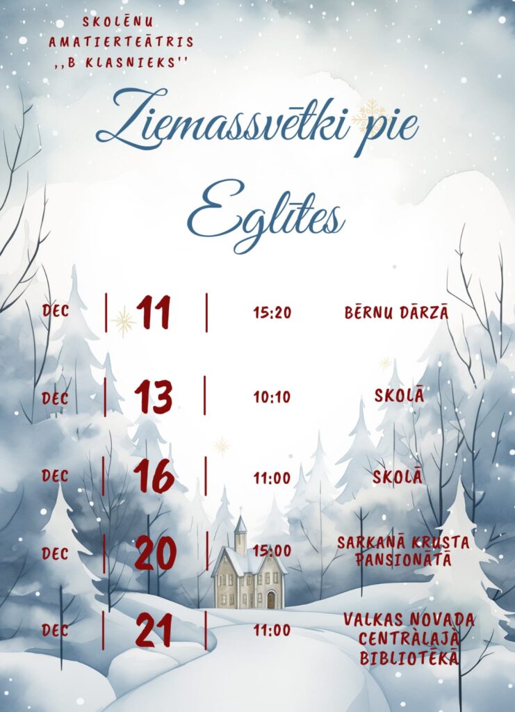 Šo sestdien “Bērnu rīti” nodarbības laikā tiks izrādīta skolēnu amatierteātra “B klasnieks” izrāde “Ziemassvētku eglīte”.