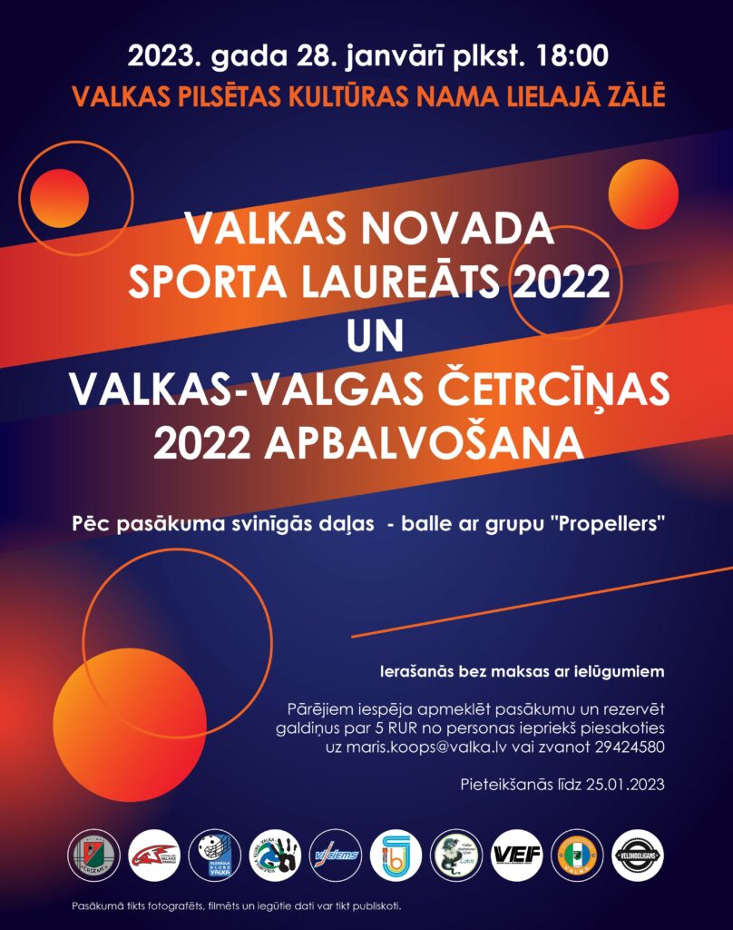 28.janvārī plkst. 18.00 Valkas pilsētas kultūras namā norisināsies “Sporta laureāts 2022” , “Valkas četrcīņas 2022” sezonas apbalvošana un labāko jauno sportistu sumināšana!