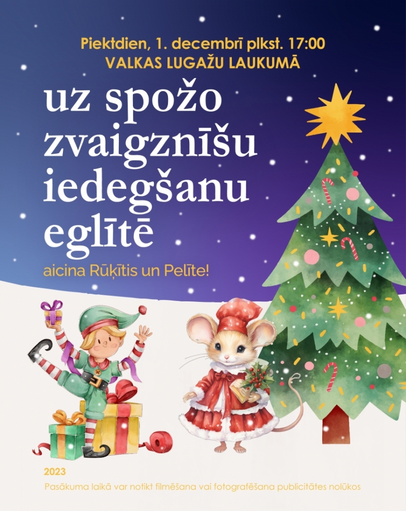 Piektdien, 1. decembrī plkst. 17.00 Lugažu laukumā pie Valkas pilsētas kultūras nama tiks iedegtas krāsaino lampiņu virtenes pilsētas centrālajā svētku eglē kopā ar Rūķīti un Pelīti!