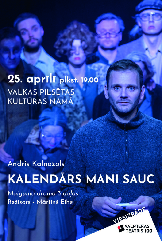 25.aprīlī plkst. 19.00 lielajā zālē – Valmieras teātra viesizrāde Andris Kalnozols “Kalendārs mani sauc”. Biļetes Valkas pilsētas kultūras nama, “Biļešu paradīze” kasēs un  https://www.bilesuparadize.lv