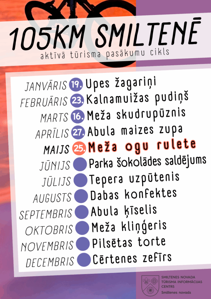 • MAZAIS APLIS –1.5 km grantēts maršruts bez reljefa, kurā aicinām sanākt uz kopīgu pastaigu pašus mazākos braucējus un vecākus ar bērnu ratiem!