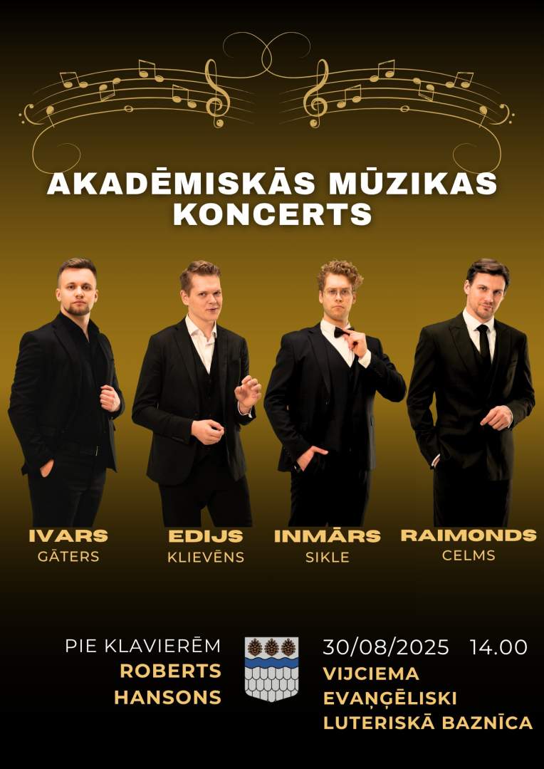 Sestdien, 30. augustā, plkst. 14.00 Vijciema evaņģēliski luteriskajā baznīcā izskanēs vokālās mūzikas koncerts, kurā tiks izpildīta operas un kamermūzika ar klavieru pavadījumu.