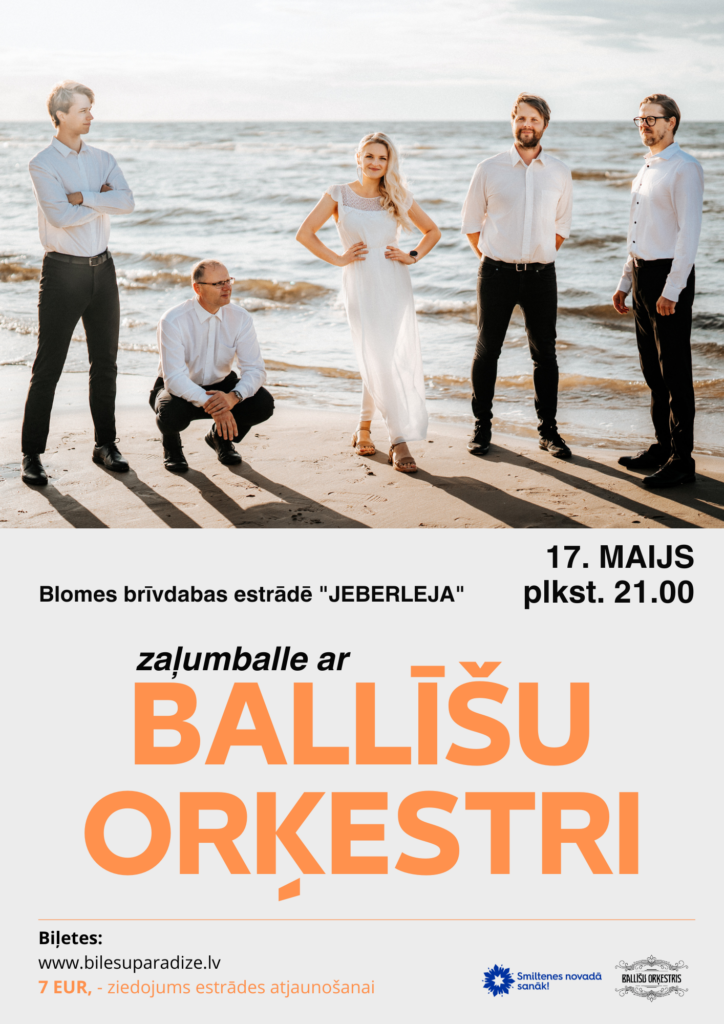 17. maijā, plkst. 21.00, Blomes brīvdabas estrādē “Jeberleja”, aicinām uz zaļumballi kopā ar grupu “Ballīšu Orķestris”. Svinēsim tuvojošo vasaru un palīdzēsim Jeberlejas estrādei atdzimt! Katra iegādātā biļete ir ziedojums estrādes atjaunošanai, jumta rekonstrukcijai.