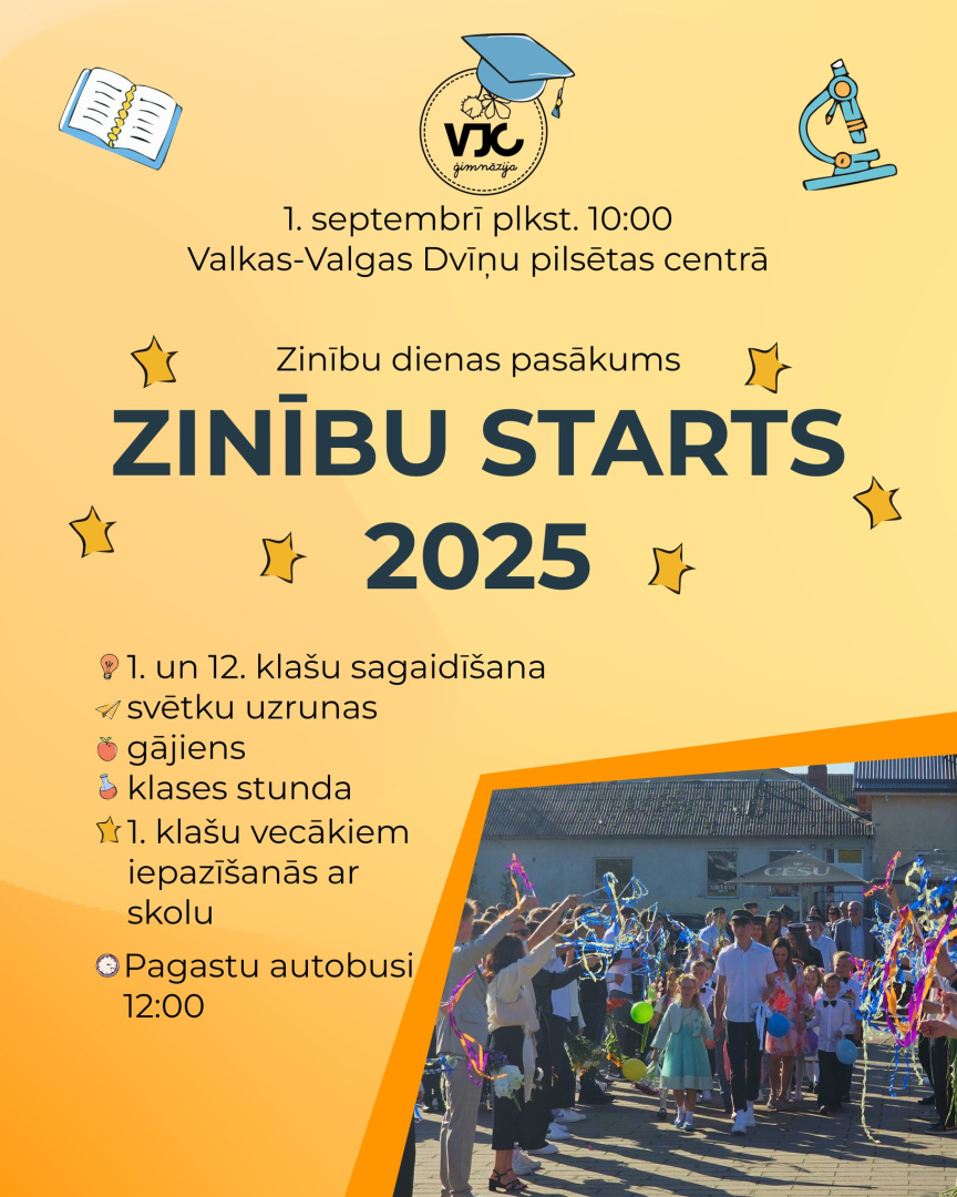 1. septembrī plkst. 10.00 Valkas–Valgas Dvīņu pilsētas centrā norisināsies Zinību dienas pasākums “Zinību starts 2025”!