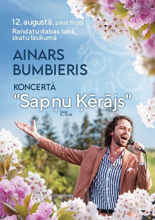 Piektdien, 12.augustā, Virešu pagasta, Randatu dabas takas, skatu laukumā, Ainars Bumbiers koncertā “Sapņu Ķērājs”.