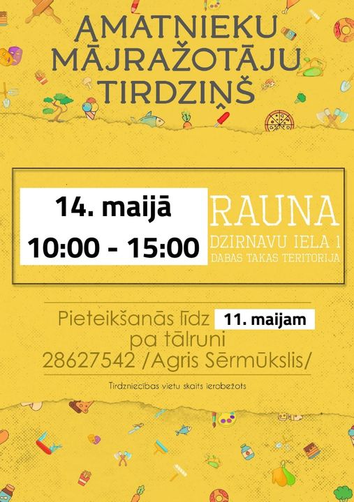 14.maijā 10:00 – 15:00 Raunā būs amatnieku un mājražotāju tirdziņš!