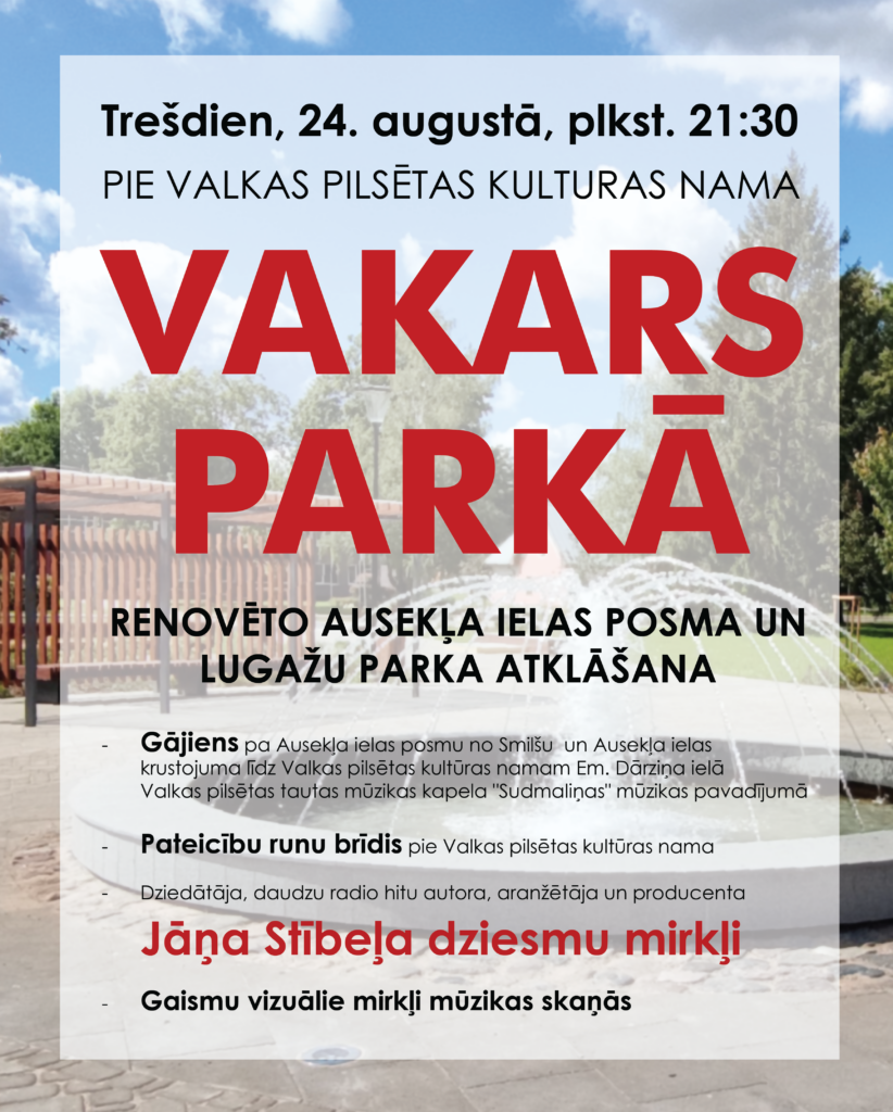 24.augustā, plkst. 21.30 aicinām uz rekonstruētā parka un renovētā Ausekļa ielas posma atklāšanu!