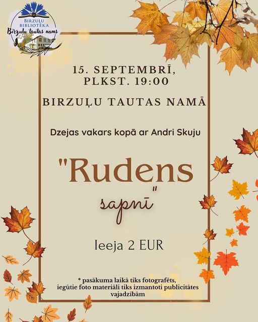 Klāt jau ir SEPTEMBRIS- dzejas mēnesis, tāpēc kopīgi ar BIRZUĻU BIBLIOTĒKU aicinām uz dzejas vakaru “Rudens sapnī”, kur jūs priecēs Andris Skuja