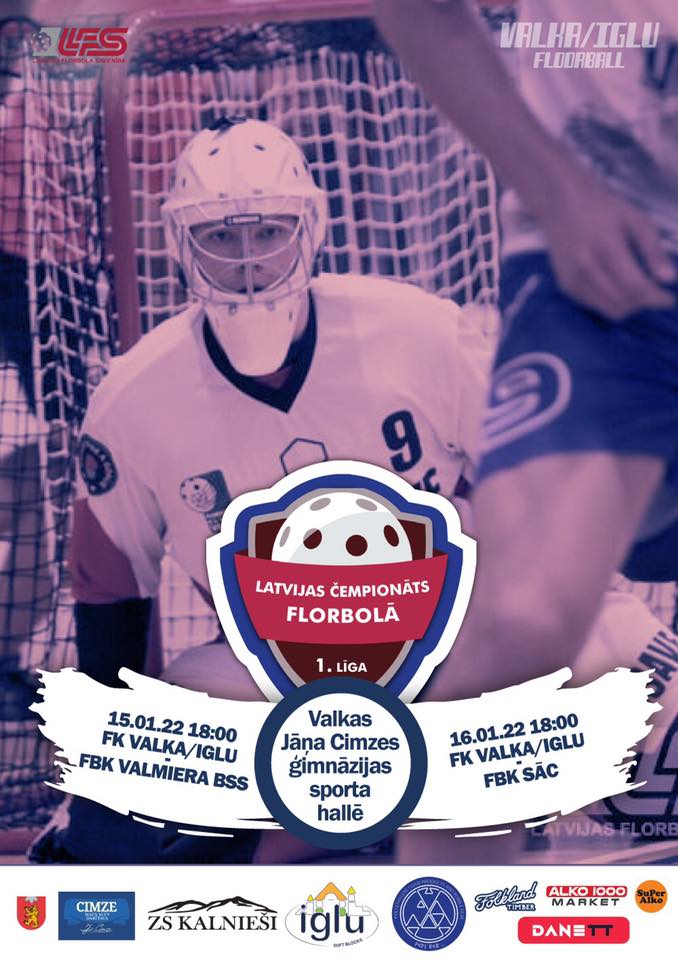 Latvijas čempionāta 1.līgā florbolā spēle starp komandām FK “Valka/IGLU” un FBK SĀC.