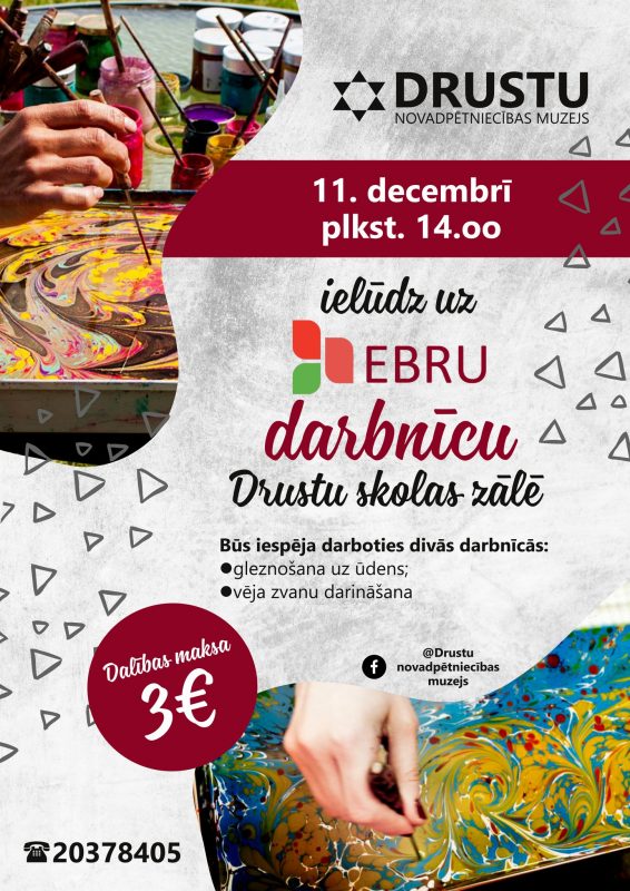 11.decembrī plkst. 14.00 Drustu skolas zālē varēs epazīt brīnumaino gleznošanu uz ūdens, informē Smiltenes novada pašvaldības mājas lapa.