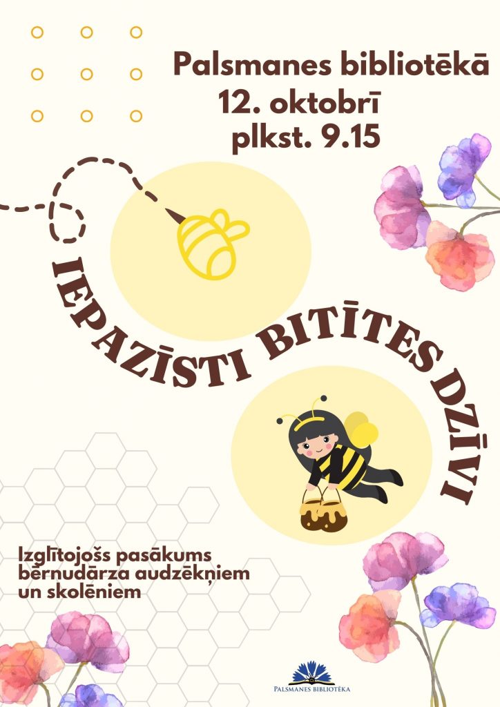 Palsmanes bibliotēka 12.oktobrī plkst. 9.15 aicina bērnudārzu audzēkņus, skolēnus un citus interesentus uz izglītojošu pasākumu “Iepazīsti bitītes dzīvi”.