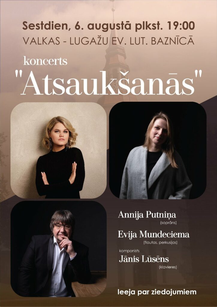 6.augustā, plkst. 19.00, aicinām apmeklēt koncertu Valkas- Lugažu ev.lut. baznīcā.
