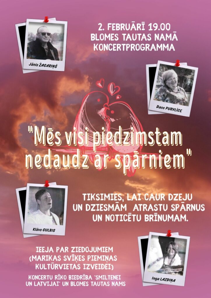 2.februārī pulksten 19.00 Blome tautas namā aicinām uz koncertu “Mēs katrs piedzimstam nedaudz ar spārniem”.