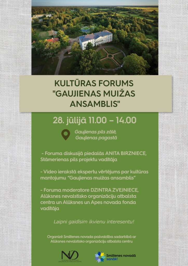 Šo ceturtdien, 2022. gada 28. jūlijā, no pulksten 11.00 līdz 14.00 ikviens interesents ir laipni aicināts apmeklēt kultūras forumu “Gaujienas muižas ansamblis”. Tas norisināsies Gaujienas muižas telpās.