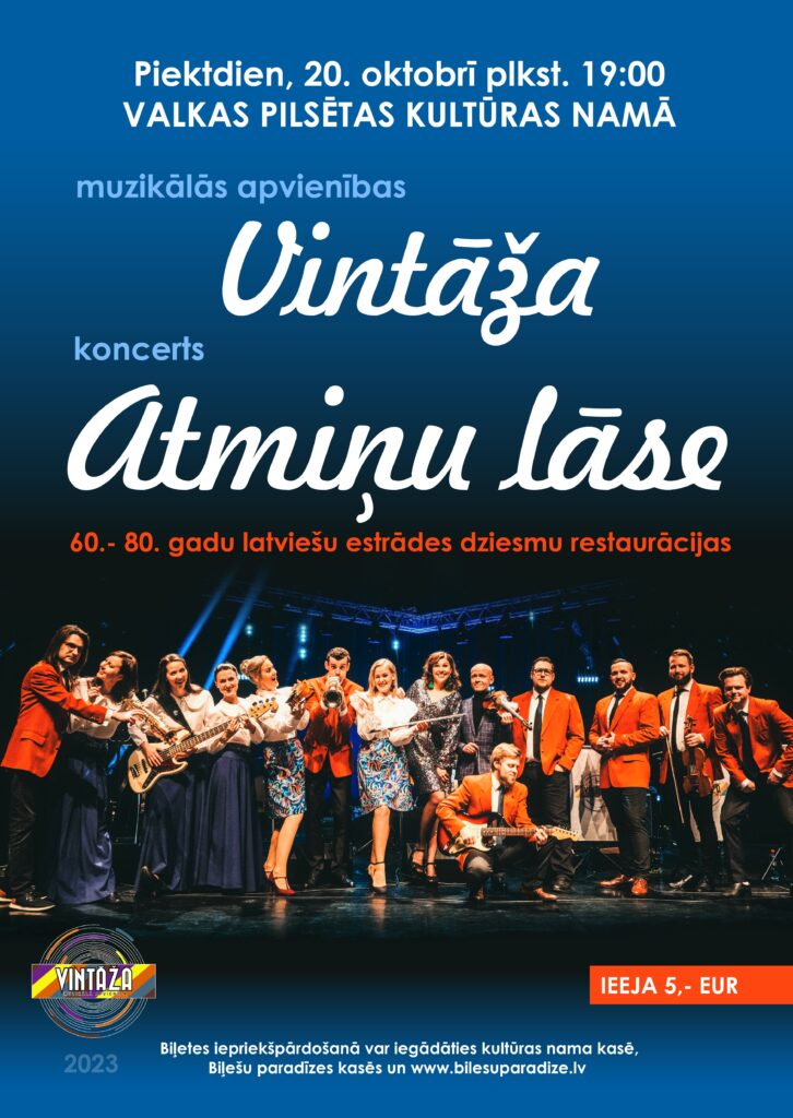 20. oktobrī plkst. 19.00 Valkas pilsētas kultūras namā – muzikālās apvienības ‘’Vintāža’’ koncerts “Atmiņu lāse’’.