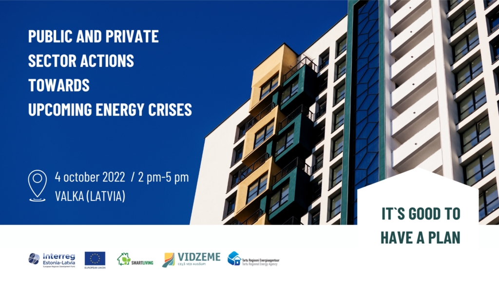 Otrdien, 4. oktobrī plkst. 14.00 Valkā (Beverīnas ielā 3) notiks seminārs “Publiskā un privātā sektora rīcības tuvojoties energokrīzei”, uz kuru aicināti pašvaldību pārstāvji, uzņēmēji, kā arī citi interesenti, kuriem būtu aktuāli iepazīties ar Latvijas un Igaunijas pieredzi par to, kā veiksmīgāk pārdzīvot energokrīzi gan publiskajā, gan privātajā sektorā. Semināra tēmas ietver gan plānošanas aktivitātes, gan arī konkrētas rīcības, kas ļautu mazināt energopatēriņu, līdz ar ko – ietaupīt naudu. Pieredzē dalīsies speciālisti un eksperti, kas ikdienā saistīti ar energojautājumiem, t.sk. energoauditori.