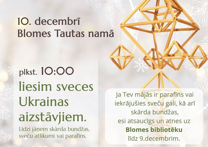 10.decembrī Blomes tautas namā liesim sveces Ukrainas aizstāvjiem.