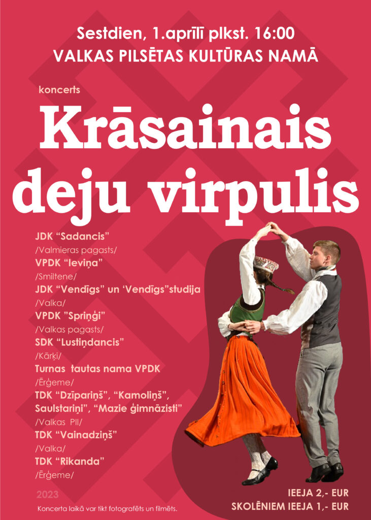 Sestdien, 1.aprīlī plkst. 16.00 Valkas pilsētas kultūras namā notiks tautas deju koncerts “Krāsainais deju virpulis”.