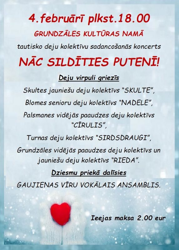 Tautisko deju kolektīvu sadancošanās koncerts "Nāc sildīties putenī!" Grundzālē