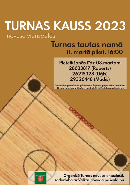 11.martā Turnas tautas namā notiks novusa vienspēļu turnīrs “Turnas kauss 2023”.