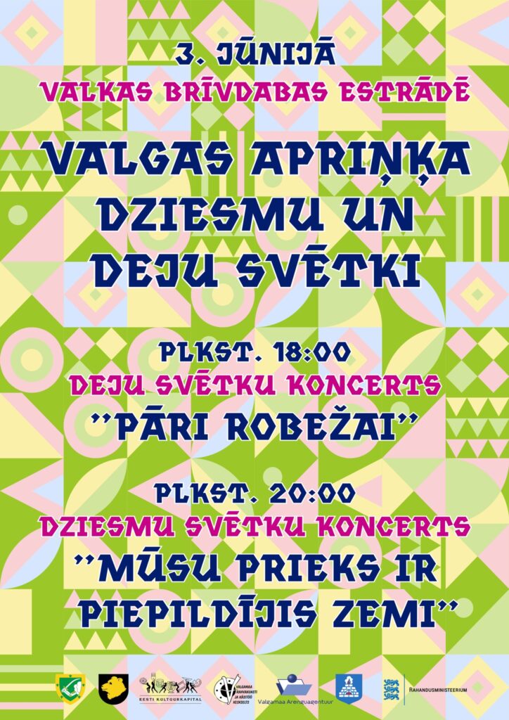 Valgas dziedošie kori un tautas deju kolektīvi aicina ikvienu interesentu 3. jūnijā Valkas brīvdabas estrādē baudīt Valgas apriņķa dziesmu un dejas svētkus.
