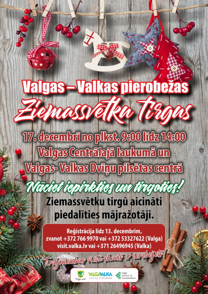 Sestdien, 17. decembrī no plkst. 9.00 līdz 14.00 Valkas – Valgas centrā, (Raiņa/Sõpruse ielā) un Valgas Jaunajā centrā norisināsies Ziemassvētku tirdziņš.