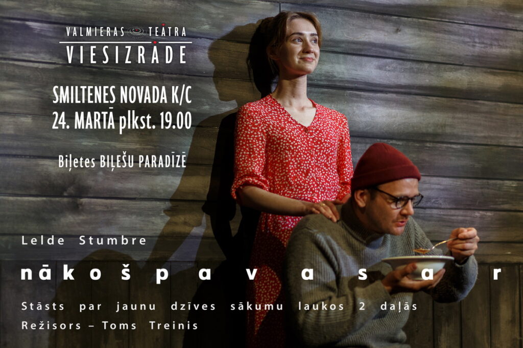 24. martā plkst. 19.00 Smiltenes kultūras centrā gaidāma Valmieras teātra viesizrāde “Nākošpavasar” Toma Treiņa režijā.