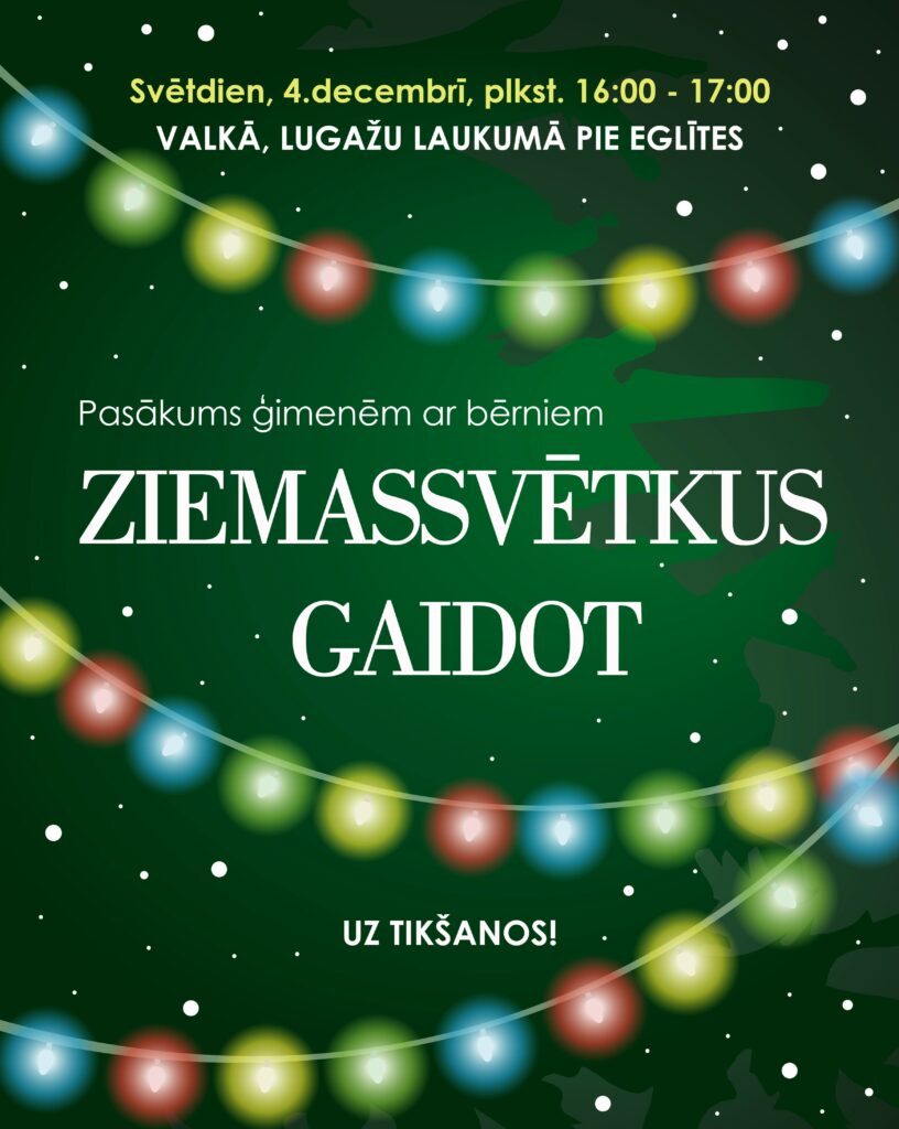 Svētdien, 4. decembrī, no plkst.16.00 līdz 17.00 Valkā, Lugažu laukumā notiks Ziemassvētku egles godināšana pasākumā ģimenēm ar bērniem “Ziemassvētkus gaidot”.