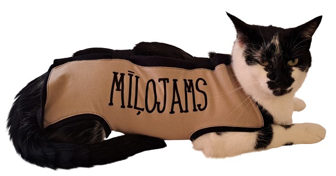 Zīmola “Two Tales” radītāja uzskata, ka šādā īpaši piedomātā un izstrādātā pēcoperācijas tērpā mājas mīlulis gan izskatās labi, gan jūtas komfortablāk.