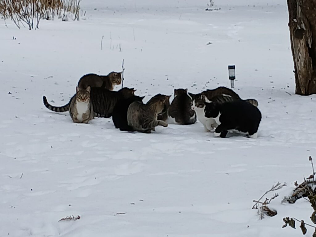 Taču pavisam drīz lauku mājas ikdiena izvērtās pavisam citāda, nekā sākumā bija plānots. Vasarā pie omes mājas sāka nākt kāda melna kaķene, kas meklēja barību. Sākumā viņa tika vienkārši pabarota, bet drīz vien kļuva skaidrs – kur ir ēdiens, tur pamazām parādās arī citi kaķi. “Laikam ejot, pie mājas sāka pulcēties arvien vairāk klaiņojošu dzīvnieku. Daļa, iespējams, bija kādreiz pamesti, citi vienkārši klīda pa apkārtni, meklējot vietu, kur var paēst.