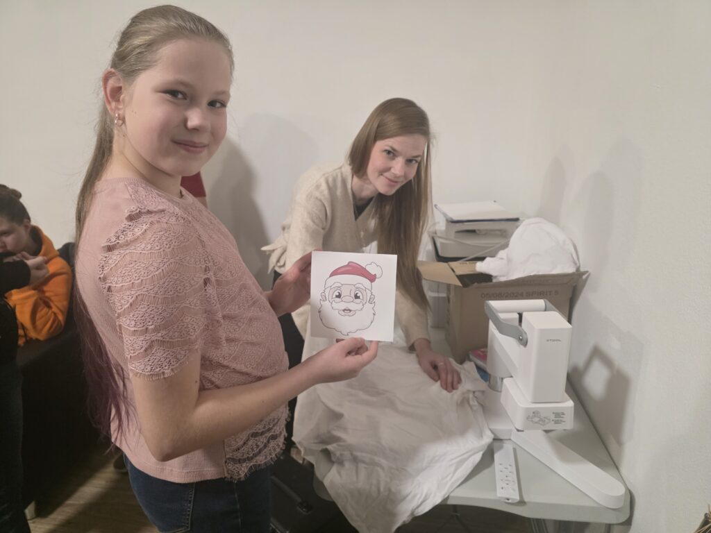 “Nebija grūti. Jāuzliek attēls uz krekla un jāspiež ar gludeklim līdzīgu ierīci. Vienu bildīti var izmantot divas reizes,” pieredzē dalās meitene.