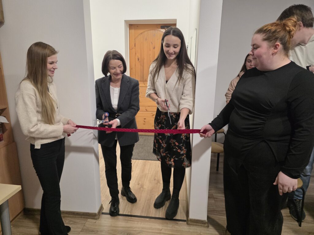 Jauniešu centra atklāšanā lentu pārgrieza Paula Kontere un Smiltenes novada pašvaldības domes priekšsēdētāja vietniece Astrīda Harju.