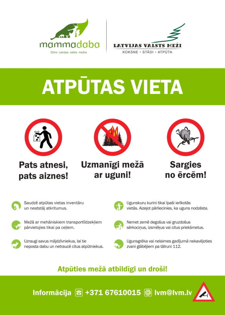 Šajās atpūtas vietās uzņēmums aizvadītajā gadā izvietojis jaunas informatīvās zīmes, kas informē par labas uzvedības baušļiem, esot mežā. Viens no tiem – “Pats atnesi, pats aiznes!” jeb “Saudzē atpūtas vietas inventāru un neatstāj atkritumus!”.