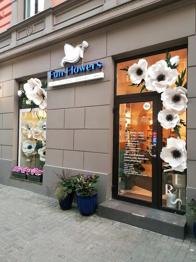 “Fun Flowers” atrašanās vieta nevar būt labāka. Tas atrodas pašā Rīgas centrā, padarot to viegli sasniedzamu daudziem iedzīvotājiem un tūristiem. Pati veikala ēka ir daļa no pilsētas vēsturiskā mantojuma, kas piešķir tai šarmu un stilu.