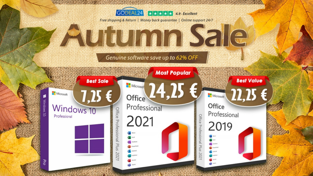 Godeal24 ir sācis savu Rudens izpārdošanu. Par 10.25€ jūs varat iegūt Windows 11 Pro mūža licenci. Windows 11 Home maksā tikai 9.98€. Jaudīgas funkcijas apvienojumā ar pievilcīgu cenu nozīmē, ka ir labākais laiks operētājsistēmas iegādei!
