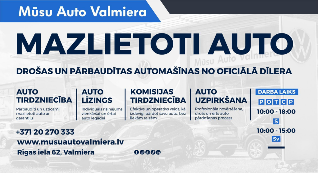 Jauns mazlietotu auto laukums Valmierā – uzticams un drošs auto tirgotājs Vidzemē!